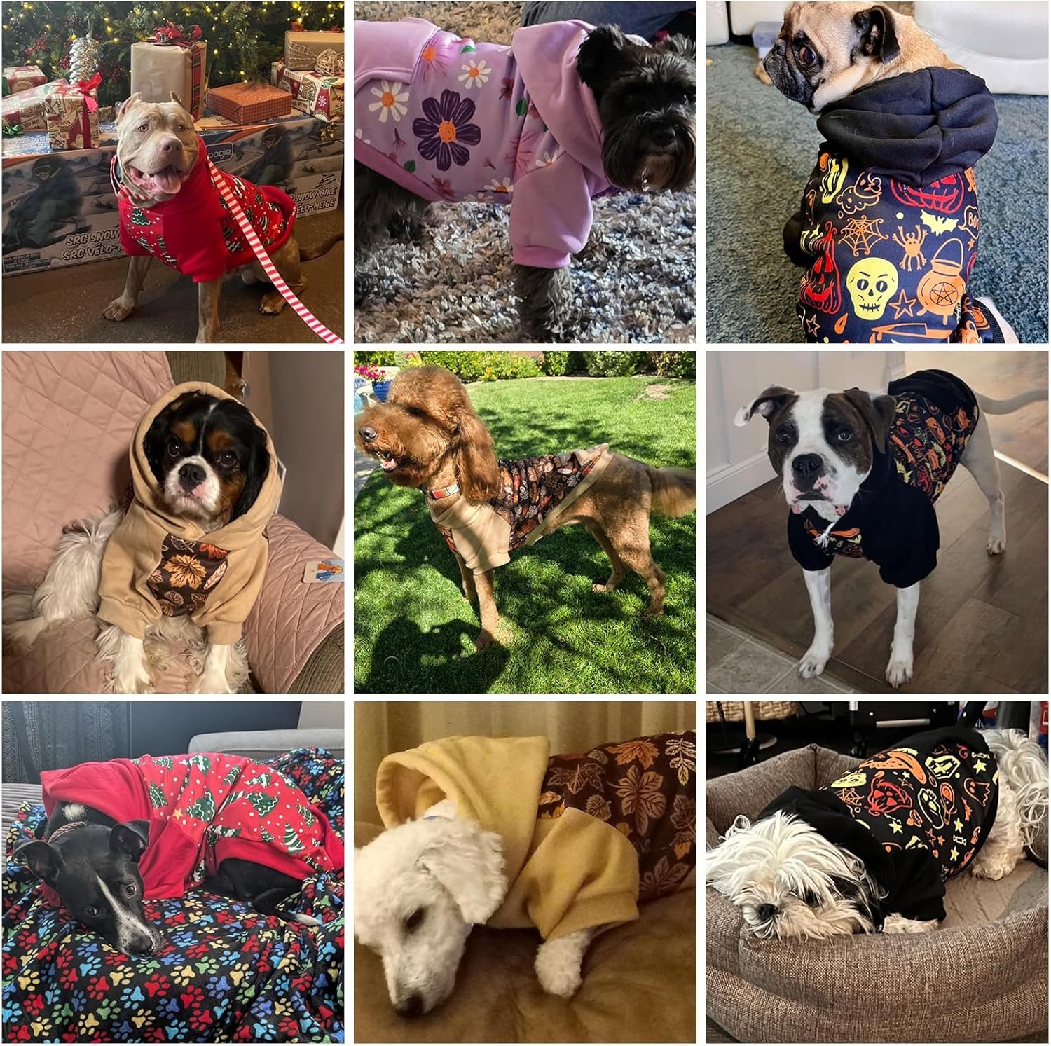 • EASY TO WEAR: These pet clothes for dogs are cut higher in the belly for easy potty breaks, The pullover design makes our dog clothes easy to put on and take off. Our collar and cuffs are elastic, so your pet won’t feel uncomfortable. This dog hoodie comes in many colors to choose from. Not only suitable for daily wear, but also suitable for wearing in various festivals to take photos, or to attend parties, picnics, etc.