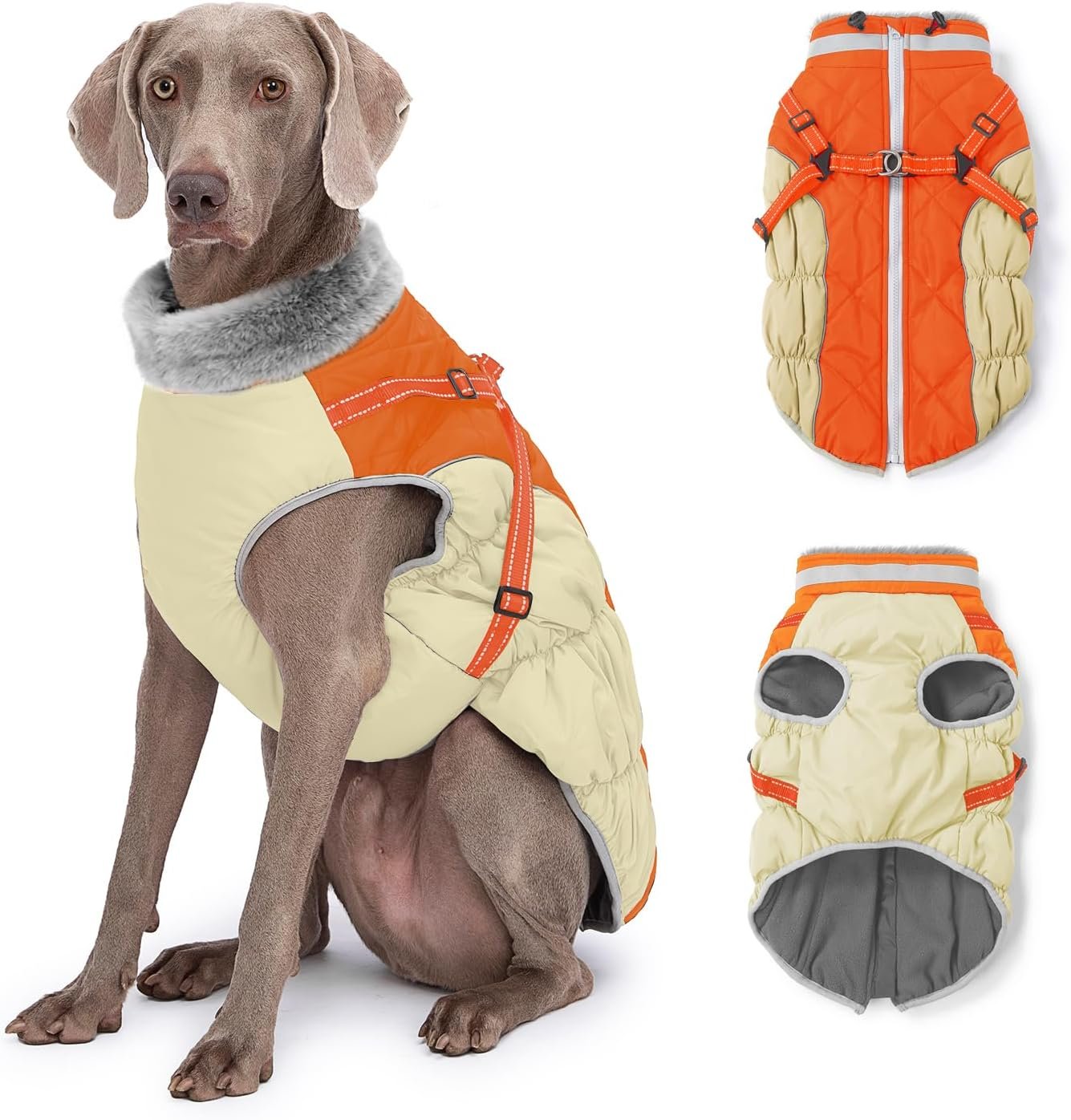 - Built-In Harness: Comfortable and secure, this 2-in-1 reflective dog coat with harness is perfect for walks, camping, or hiking. This winter dog jacket supports strong pulls, ensuring safety. This dog coat is for large, small, and medium dogs