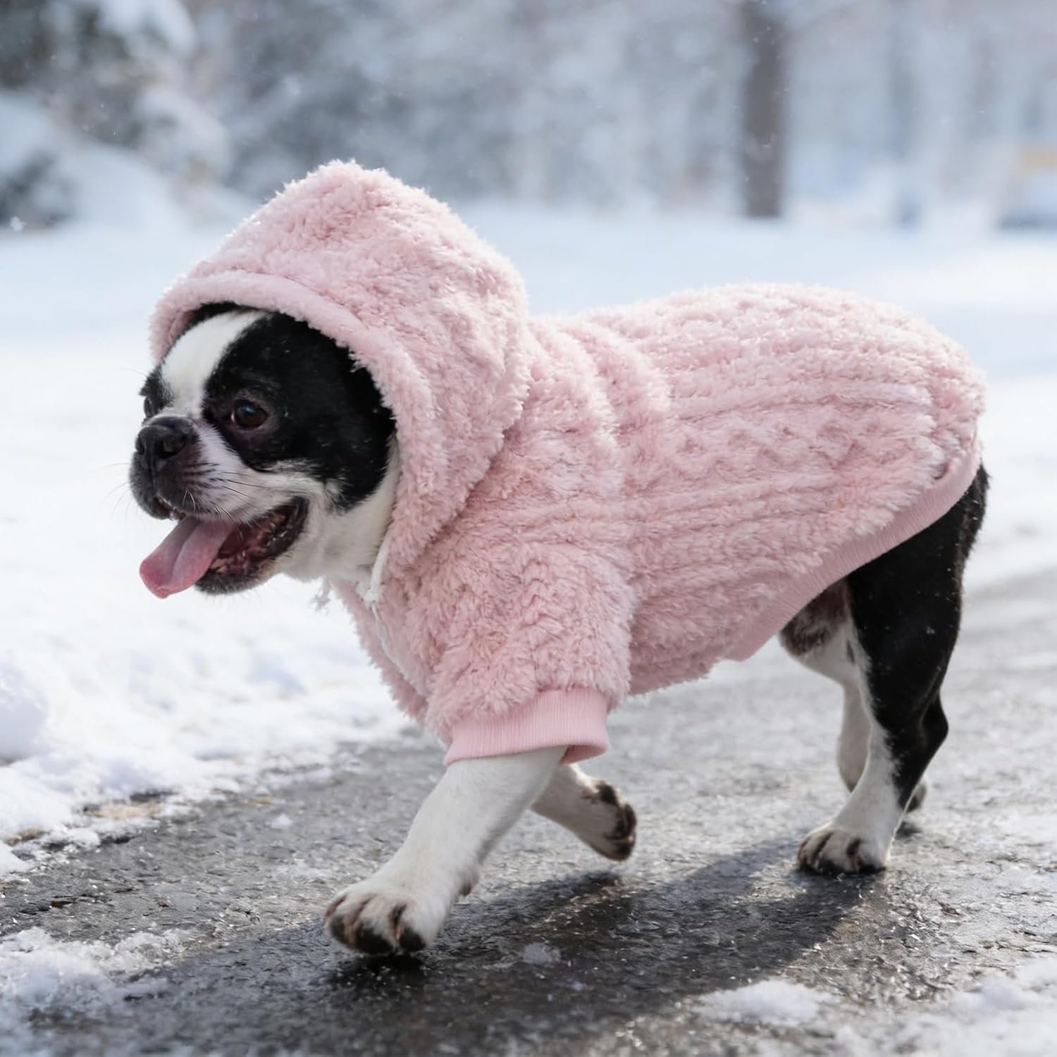 - WARM HOODIE FOR COLD WEATHER: Wearing our dog hoodie, let your furry friend enjoy unparalleled comfort. It is made of soft plush material. Providing a warm and comfortable wrap around your pet. And protecting them from the cold and keeping them warm throughout the winter. It also provides excellent stretchability, allowing your dog to move freely without restrictions. In addition, the hat with an adjustable drawstring can wrap around the dog’s head to protect it from the cold wind.