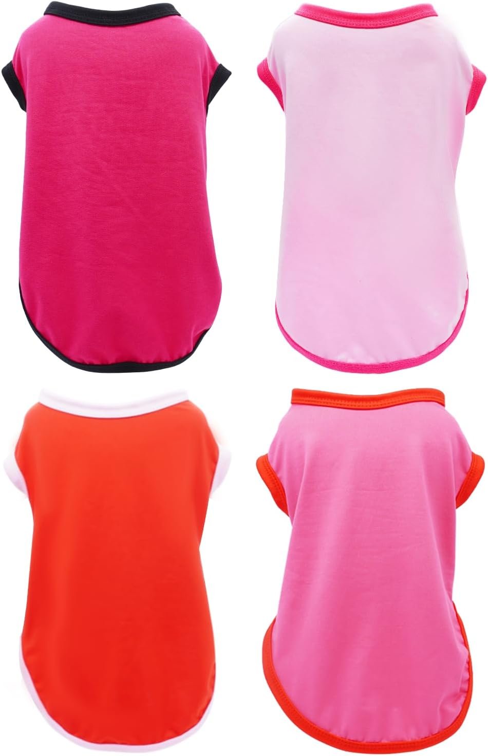 - Solid Color Dog Shirts: The package includes 4 different solid-colored small dog tank top, the lock edge uses a contrasting color design. Colors are red, light pink, rose pink and pink. Simple yet elegant, perfect for dogs to wear on a daily basis, great gift for your furry pets