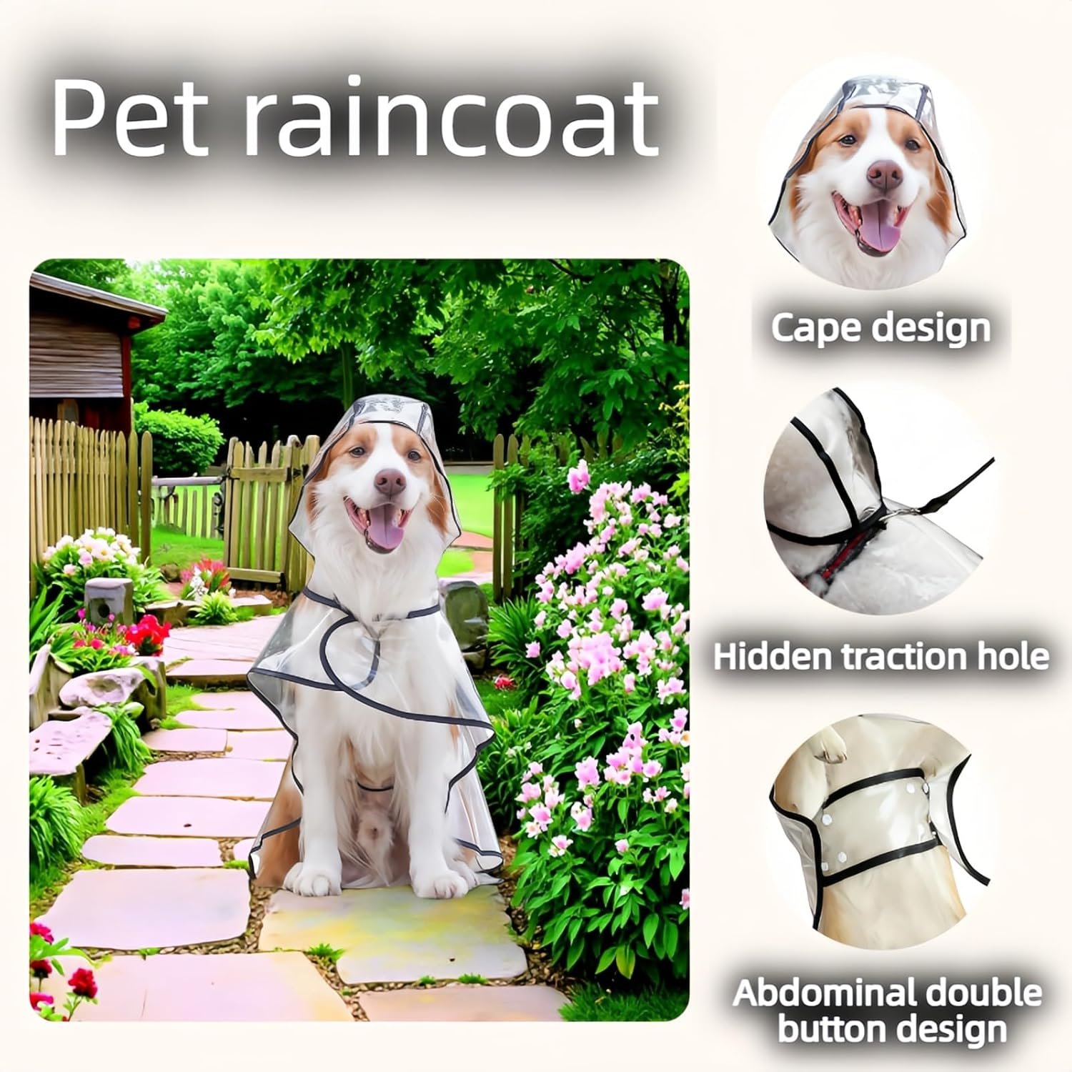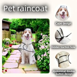 • 2. Hassle-Free Cape Design & Easy Wear No more struggling! The innovative transparent cape slips on effortlessly. Dual snap buttons allow quick, adjustable fitting without restraint. Fully liberates legs for natural movement. Say goodbye to complicated outfits that stress your pet and you.WATERPROOF DESIGN: EVA material construction provides complete protection from rain and wind while maintaining breathability and comfort for your pet
